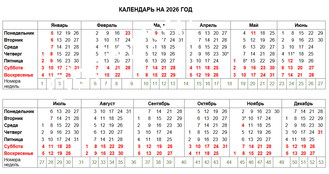 При пятидневной рабочей неделе в 2026 году будет 247 рабочих дней, в том числе 4 сокращенных дня, 118 выходных и нерабочих праздничных дней.